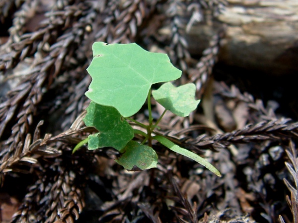 特徴: 暖温帯に分布する落葉性の木本つる。つるはかなり強靱である。 見分けるポイント:長さ2cm近くもある細長い子葉が特徴。一般的にツヅラフジの葉は少し真ん中がくびれた卵形になるが、高知では写真のように浅裂するツヅラフジが多いような気がする。