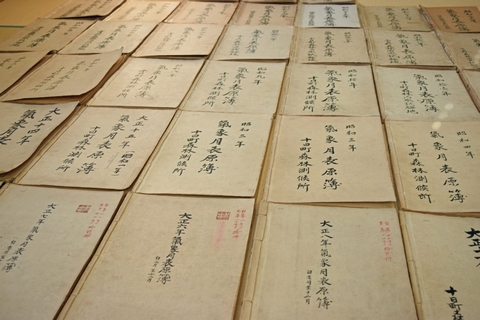 明治時代末期に頻発した甚大な水害の対策のため,中山間地域の気象観測を行うことや森林の治水機能を解明することを目的として,1910年代に国内20の主要河川の上・中流域に計39箇所の森林測候所が設置されました(神保,1959;遠藤,2007).十日町試験地は,そのような経緯で農商務省山林局林業試験場十日町森林測候所として1917年3月に信濃川が流れる新潟県十日町市の現在の地に創設され,1936年に十日町森林治水試験地,1950年に十日町試験地と改名して現在に至っています.当試験地では,設立当初からの雪や気象の観測値を記録した観測記録原簿(気象月表原簿)(図1)がすべて保管され,また観測値を集計した気象年報の出版が今日まで継続されてきました(竹内ら,2019).